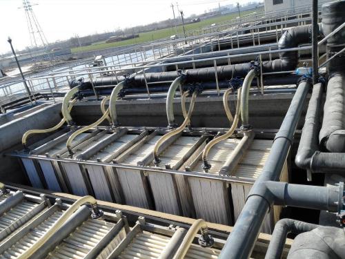 一體式膜生物反應器是指把膜組件置于生物反應器內部。進水進入膜生物反應器,其中的大部分污染物被混合液中的活性污泥去除,再在外壓作用下由膜過濾出水。