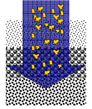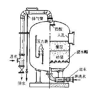 普通過濾器,粒徑小的濾料在上層,愈往下層粒徑愈大。水流自上而下地在濾層孔隙間進(jìn)行過程中,雜質(zhì)首先接觸到截污能力最強(qiáng)的上層細(xì)濾料,大顆粒懸浮物最先被除去,剩下一些小顆粒懸浮物被輸送到下一層。由于下層濾料比上一層要粗,其截留能力不足上一層,越往下層,這一現(xiàn)象愈加明顯。這種過濾,事實(shí)上會造成污泥絕大部分堆積在上層,導(dǎo)致局部阻力增長過快,總的水頭損失大。