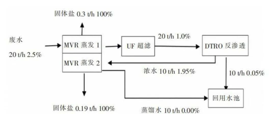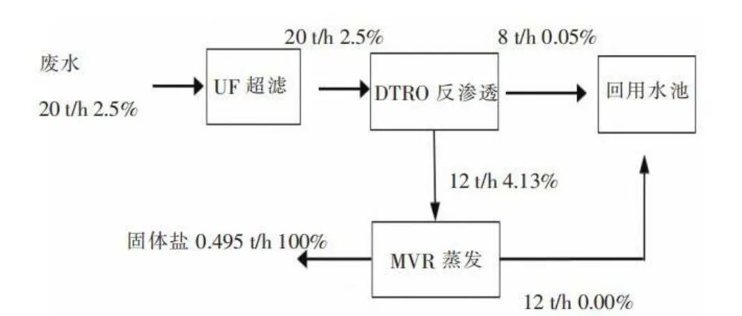 2、采用先膜濃縮后蒸發(fā)的方式,投資成本較高,但是運(yùn)行成本低。通過(guò)膜濃縮進(jìn)行減量處理,可降低蒸發(fā)單元運(yùn)行成本。